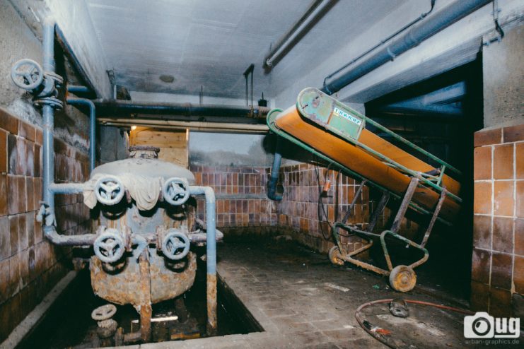 Absolut dunkel und unheimlich war es im Keller des Hotels. Die Räume waren teilweise mit Grundwasser geflutet. Dennoch sind einige der Geräte und Techniken dort geblieben.